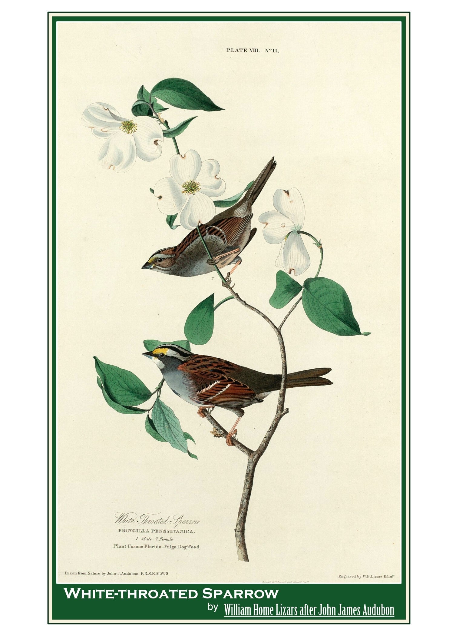 "White-throated Sparrow" by William Home Lizars after John James Audubon - Scottish