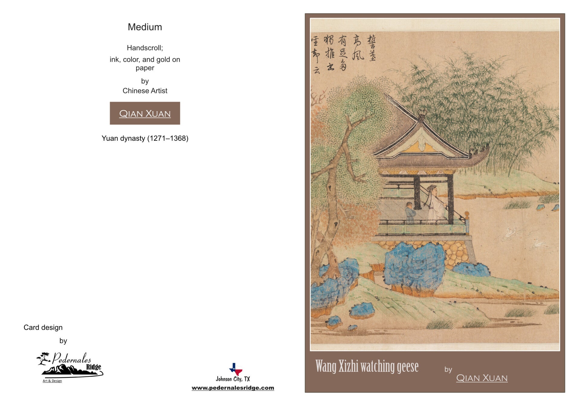 Fine Art Greeting Card 5 x 7 "Wang Xizhi watching geese" by Qian Xuan - Chinese